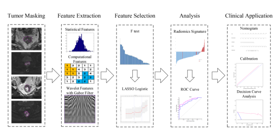 图二:影像组学进行结直肠癌疗效预测的流程图