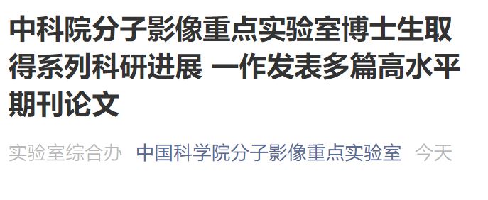 中科院分子影像重点实验室博士生取得系列科研进展 一作发表多篇高水平期刊论文