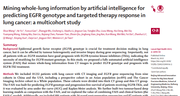 基于人工智能的肺癌靶向治疗获益人群无创筛选